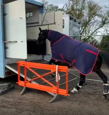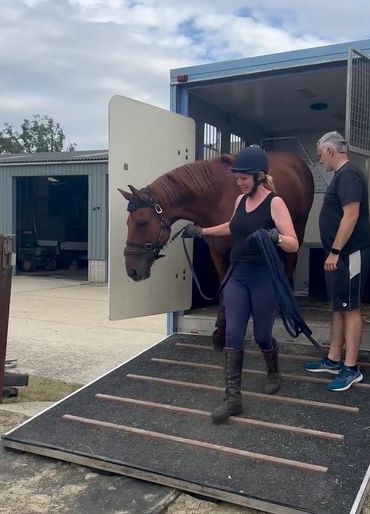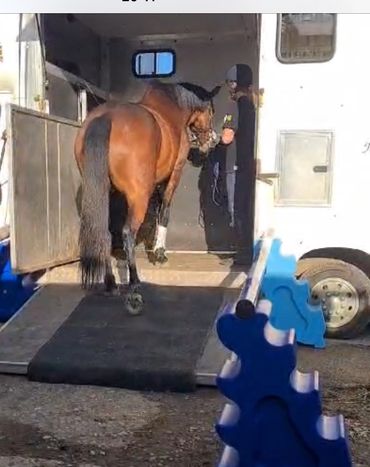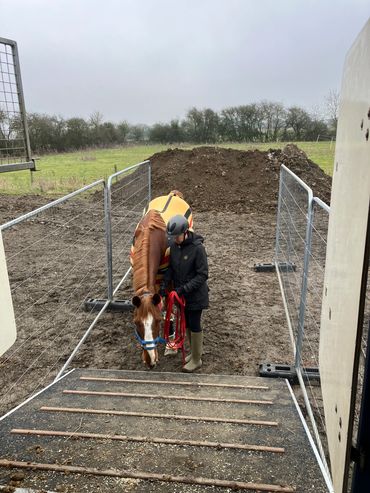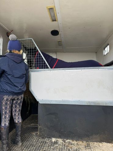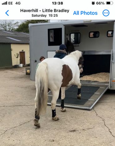 Alfie also had some issues with loading where he would go onto the box but he would turn and run back off almost bulldozing myself and or anyone else that was in his way. Christina came out for a couple of sessions to work on this. Replicating each individual step of being on a box and breaking it down for him before slowly linking them together and eventually loading him onto the box and being able to go for a trip to Christina’s own yard and back again.
