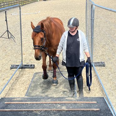 Agile equine agility evets build confidence and acceptance of new objects and situations for you and your horse. If you want to build your horse's confidence within a safe and supportive training environment, agile equine agility exercises would be a great place to start. Our obstacles include exercises that involve teaching your horse over, under round and through exercises both in hand and ridden. If you are interested in learning how to safely introduce your horse to bridges, balance platforms, flags, balloons, balls, jump through hoops, and other experience other new objects, I can help. Agile equine agility obstacles are designed to combine in hand and ridden exercises that build confidence and trust between horse and human without fear, force or punishment. Understanding how your horse prefers to use his vision when investigating and engaging with new objects and environments is a vital element of these exercises. If you would like to know more about these types of exercises and where to start, please contact me via email at christina@equineperceptive.co.uk. I also offer visiting agility clinics to clients with a minimum of 10 in a group, if you would like to organize an agility event at your yard, I offer equipment, tuition, rosettes and a competition in our agility event packages.